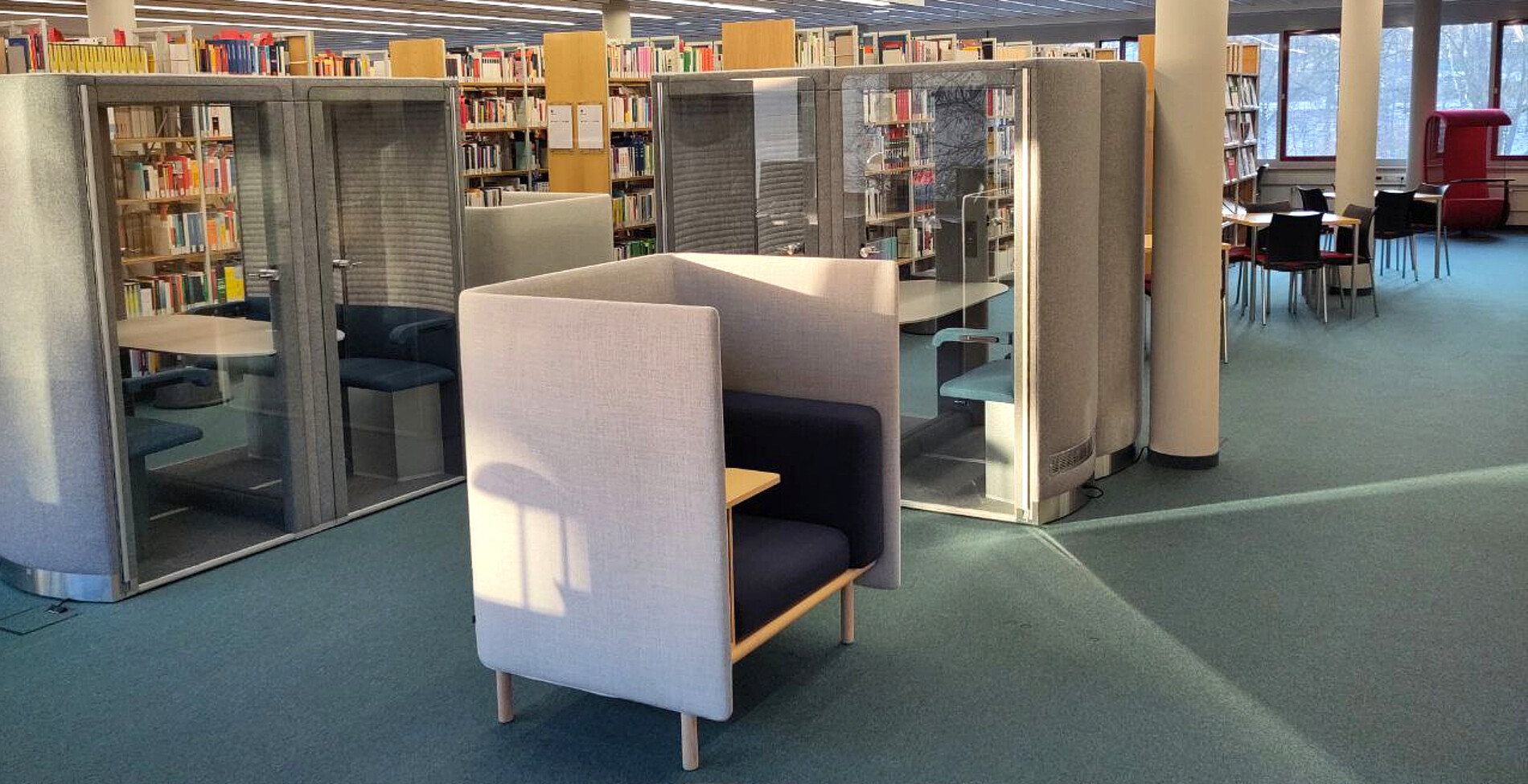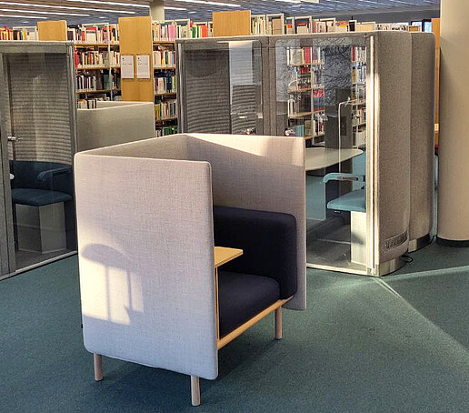 Noch ganz neu sind die Flüsterboxen. In Görlitz sind zwei schallisolierte Mini-Gruppenarbeitsräume zu finden, welche für Teamarbeiten, Besprechungen oder Videokonferenzen genutzt werden können. In Zittau ist eine Einzel-Flüsterbox hinzugekommen. Diese ist auch durch Glastüren schallisoliert und bietet einen geschützten Raum für Videokonferenzen etc.